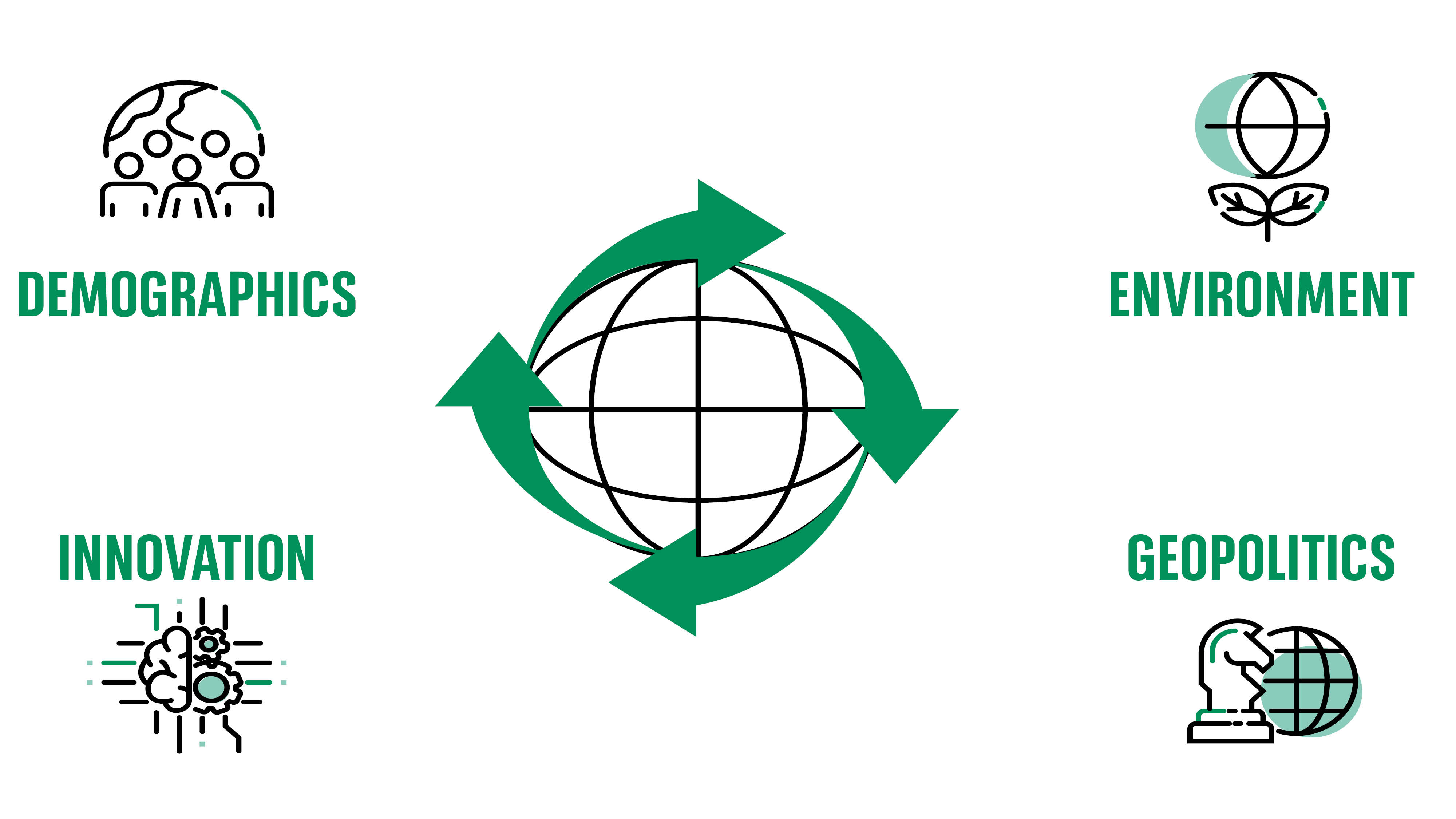 Demographic shifts, inequality, pressure on human capital, human rights and public health are driving demand for more inclusive and resilient systems. While complex, such issues can lead to innovative solutions and new investment opportunities.