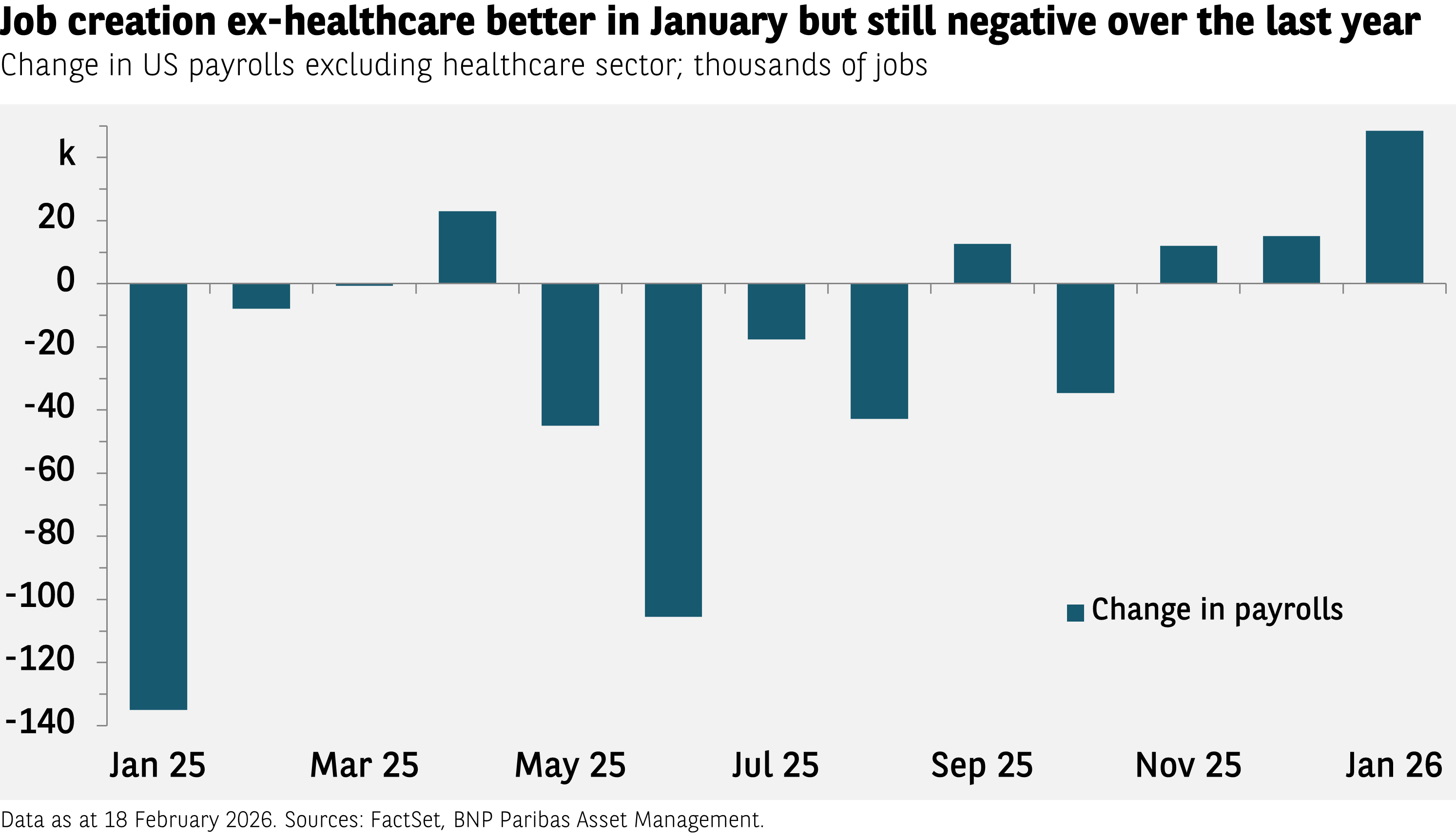 Recent labour market data assuaged worries about US job creation. Excluding the healthcare sector (where job growth has been strong for years), 49,000 new posts were created in January. That still leaves the total for the last year, however, in negative territory. Some investors see the job losses as indicating a weak US economy. In fact, in our view, it is a sign of strength. GDP is rising, but the output is being generated with less labour – meaning productivity is going up. Where are the laid off workers going? Many are setting up shop on their own. We estimate about 800,000 sole proprietorships were established over the last year.