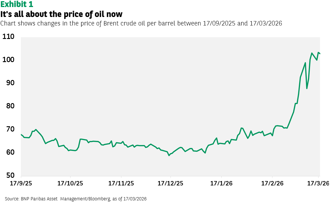 由於荷姆茲海峽實際上關閉 ,國際能源總署將此形容為「全球石油市場史上最大供應中斷」,自中東衝突開始以來,油價已上漲約40%。若無法迅速解決並重新開放海峽,這場能源衝擊可能進一步惡化,導致通脹上升,進而對消費者的實質收入與企業獲利產生負面影響。衝擊持續時間越長,對經濟成長前景的威脅就越大。因此,油價對投資人而言至關重要。未來報酬表現將取決於這場能源衝擊的規模、範圍與持續時間。