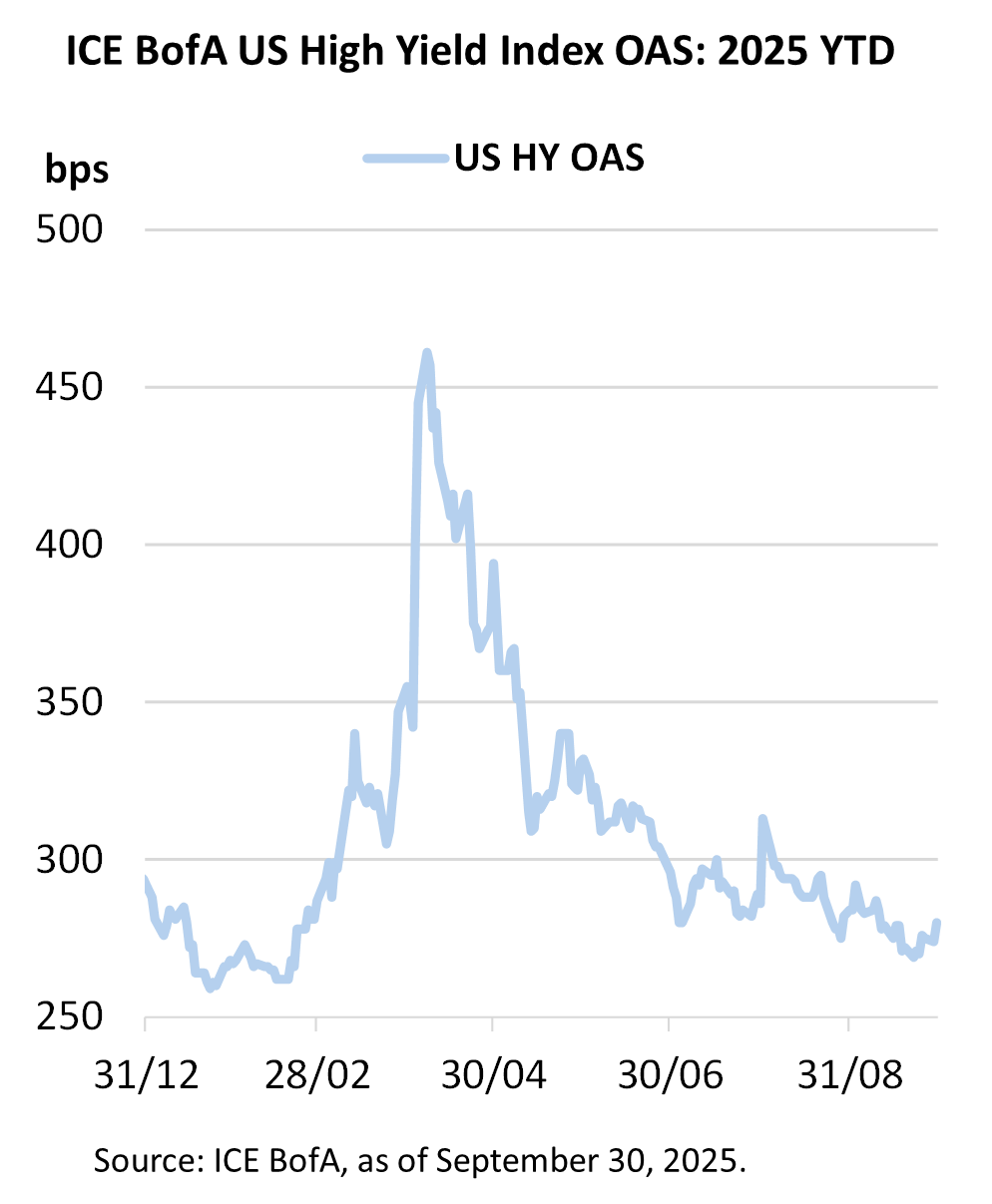 美國高收益市場繼2025年春季表現波動後,夏季相對平靜。與此同時,市場繼續擔心美國關稅可能造成通脹衝擊、勞動市場轉弱、白宮與主要經濟機構的緊張關係加劇,及通過《大而美法案》(One Big Beautiful Bill) ─ 這可能在未來數年進一步擴大本身已迅速增加的赤字。1
